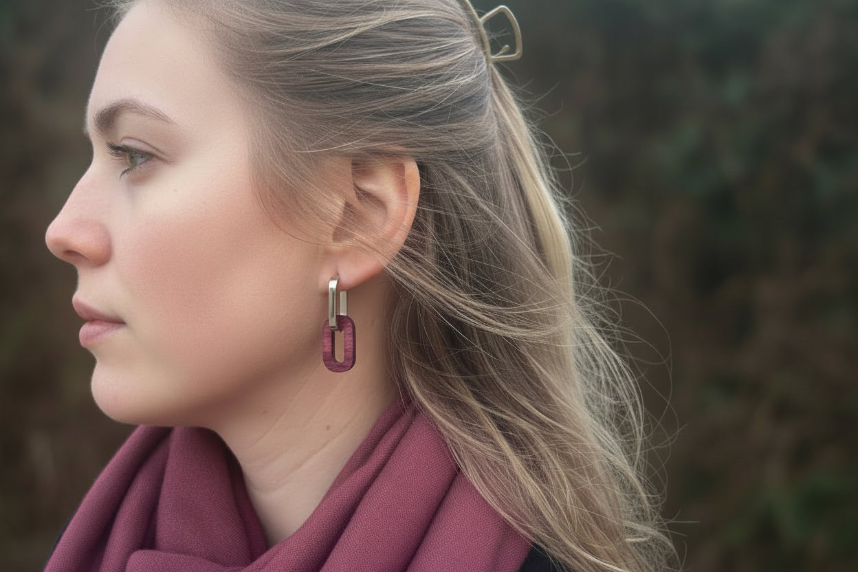 Formée à l’ébénisterie, j’ai appris la restauration de meubles anciens auprès d’un artisan bordelais. Avec Racines Artisanat, j’allie création et valorisation du bois. Je récupère des chutes de bois précieux pour créer des bijoux uniques et durables. Je réalise aussi des objets de décoration en bois français, mêlant savoir-faire traditionnel et design moderne.